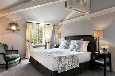 Retrouvez l’atmosphère unique des lits de l'hotel les Hauts de Loire à Blois. L'ensemble de lit comprend le matelas, le sommier et les pieds. Vous pouvez ajouter le surmatelas en complément.
